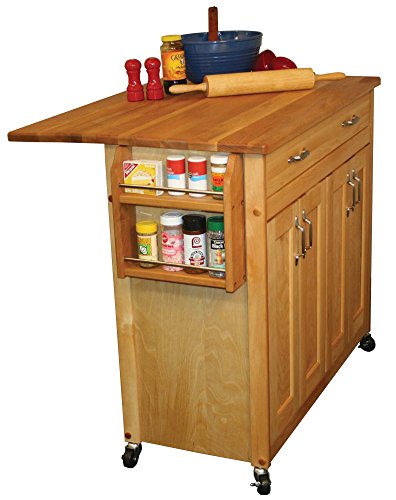Description: Catskill Craftsmen has become the nation's leading manufacturer of ready-to-assemble domestic hardwood kitchen islands, carts, and work-centers. Catskill Craftsmen manufactured items are made from naturally self-sustaining, non-endangered North American hardwoods, primarily Northern Yellow Birch. Lumber is purchased from area sawmills, then dried, manufactured, and packaged on site. All sawdust, shavings and waste materials generated during the manufacturing process is converted into wood pellet fuel, and used to heat homes. This cart comes with a drop leaf that doubles the work surface and has a very large drawer. It comes with a spice rack and a towel bar. The interior shelves are adjustable and the wheels are locking caster. The hardware is nickel plated and the wood is oiled finished. It is made from sustainably harvested domestic hardwood, is ready to assemble and is made in the USA.
