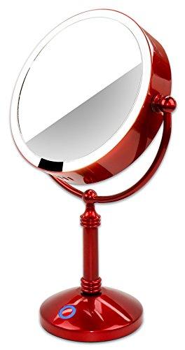Vanity Mirrors - Modern Mirror 13706-Red Dual Side Led lighted makeup Mirror with 10x magnification, Flip on/off Technology, Rechargeable Battery