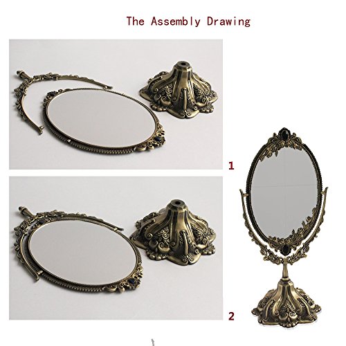 Description: Luckymoo® Antique double face bronze alloy metal makeup dressing table desktop standing cosmetic mirror embossed frame makeup tool