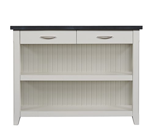 Description: The Server kitchen island is a perfect place to help organize your kitchen and provide additional seating with the breakfast bar. The real granite top blends beautifully with the clean, White finish. The two storage drawers with brushed Nickel hardware are perfect for storage of kitchen utensils, while the two open storage shelves are perfect for storage of items that are needed close-at-hand. Easy to assemble with just a Phillips head screwdriver.