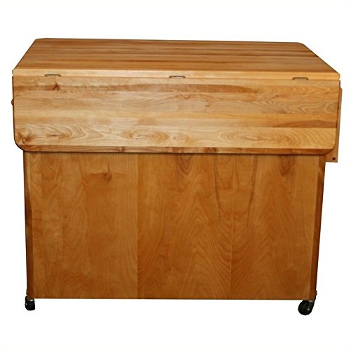 Description: Catskill Craftsmen has become the nation's leading manufacturer of ready-to-assemble domestic hardwood kitchen islands, carts, and work-centers. Catskill Craftsmen manufactured items are made from naturally self-sustaining, non-endangered North American hardwoods, primarily Northern Yellow Birch. Lumber is purchased from area sawmills, then dried, manufactured, and packaged on site. All sawdust, shavings and waste materials generated during the manufacturing process is converted into wood pellet fuel, and used to heat homes.  This cart is a classic catskill design with butcher block top and the drop leaf almost doubles the work surface! It comes with a large drawer and a spice rack and towel bar.  It has adjustable interior shelves and has nickel plated hardware. This cart is made from sustainably harvested domestic hardwood, is ready to assemble and is made in the USA.