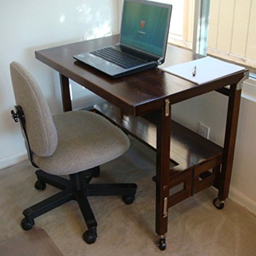 Description: Add a unique desk to your home for the perfect place to do work, study, or write. its wide surface provides plenty of space for books, computer and supplies. easily folding to a compact 5-inch in less than 5 seconds due to its patented precision hinges, the oasis flip and fold is convenient, practical, and space-saving. the four wheels allow for easy movement of the desk while each wheel's locking caster ensures a stable workplace. this desk features a laminated wood top with solid wood trim and a solid hardwood frame. it is available in natural and walnut finishes. best of all, it comes fully assembled so you can enjoy the desk right away.