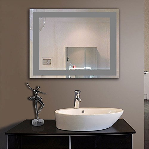 Vanity Mirrors - DECORAPORT 36 Inch * 28 Inch Horizontal LED Wall Mounted Lighted Vanity Bathroom Silvered Mirror with Touch Button (A-CK010-I)
