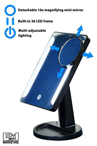 The mirror's sleek design masks its smart utility as both a stand-mounted cosmetic mirror for your desk or a detachable 10x magnification mini-mirror to carry in your pocket.BEST RESULTS: